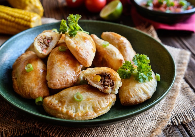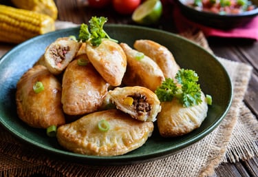 Our Empanadas are a perfect blend of crispy and savory, crafted from golden, flaky dough filled with your choice of deliciously seasoned meats, cheeses, or vegetables. Each empanada is fried to perfection, delivering a satisfying crunch with every bite.